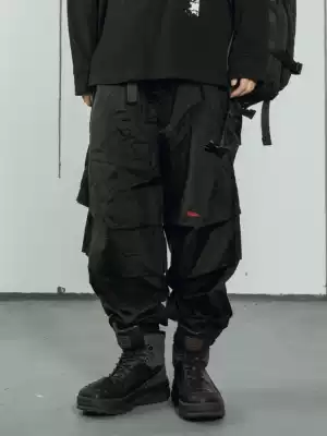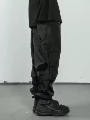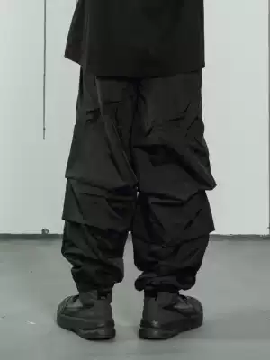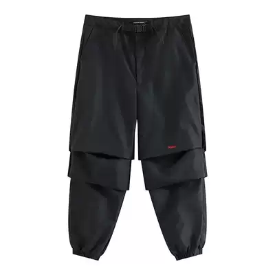 POH 19AW vampire embroidery wash water carbon black loose double pleated metal nylon bunch feet trousers national tide overalls