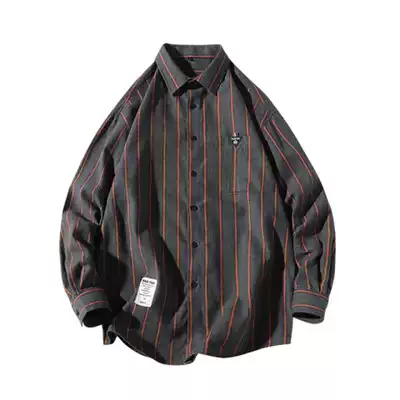 Spring and autumn shirt men's long-sleeved casual Korean version of the trend men's loose vertical striped shirt top clothes inch shirt jacket