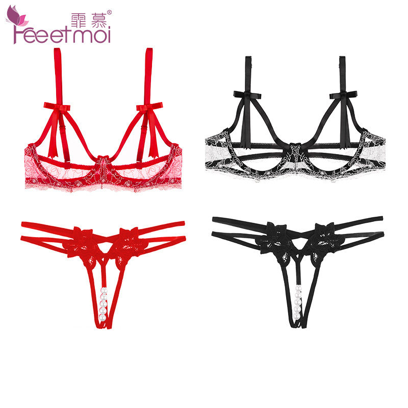 Missed Bra Romance Lingerie Woman Teasing Tempting Open Crotch Pearl Underwear Sexy Three-point Sleepwear Passion Suit-Taobao