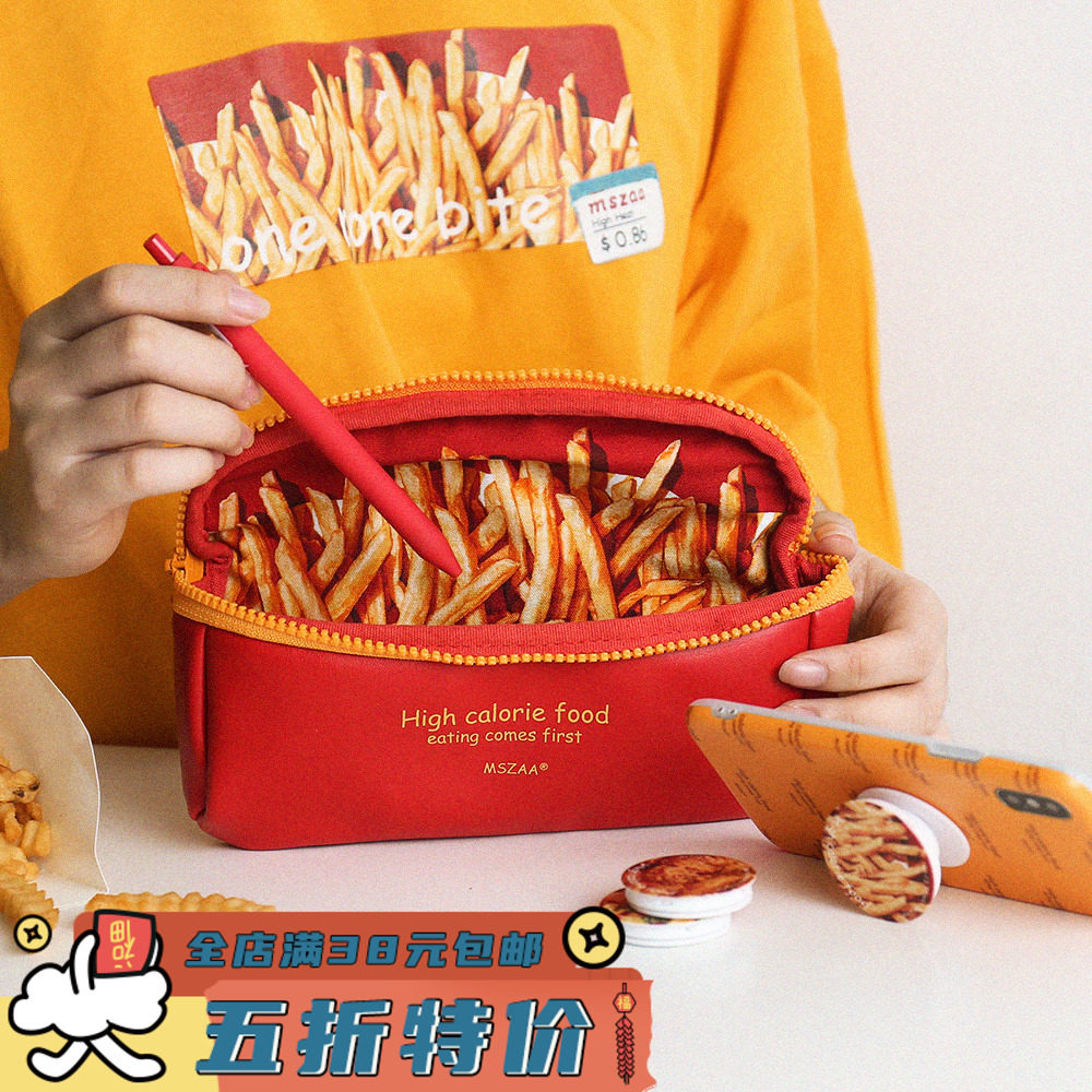 Miscellaneous, original high calorie food pen bag personality to blame PU leather big capacity creative fried chicken fries stationery bag