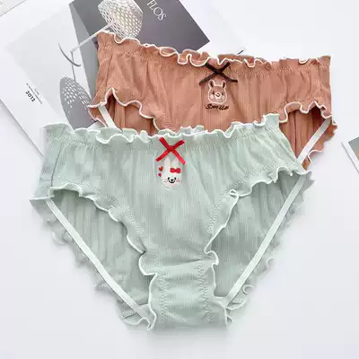 Honey two Japanese playful ruffle thread cotton underwear comfortable cute cartoon embroidery breifs students