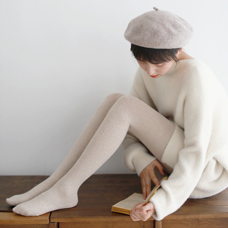 Mituxian thin cotton striped tights spring and autumn medium thick Japanese oat color winter velvet thickened inner tights women