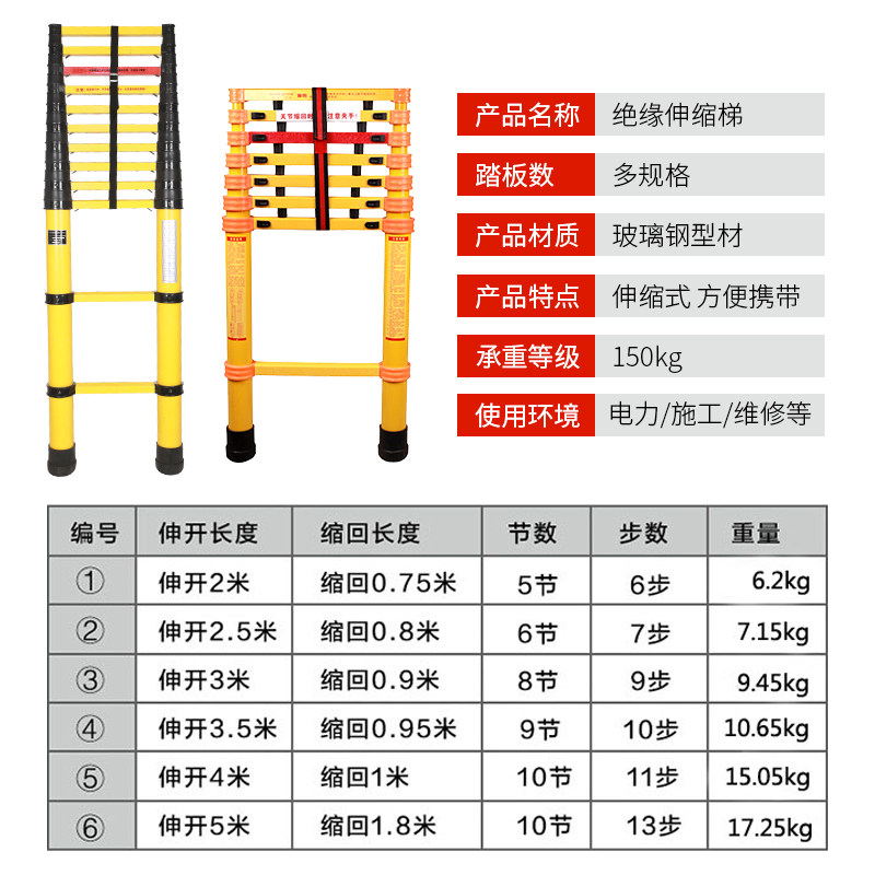 Insulated anti-slip telescopic ladder electric worker-type folding fishing rod ladder lifting bamboo glass fiber electric construction ladder
