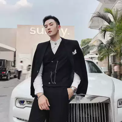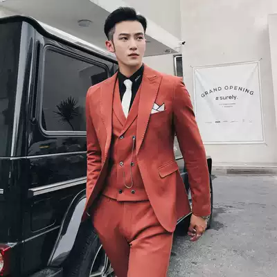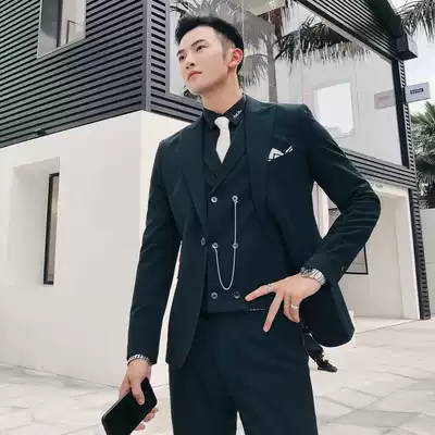 Wedding photography photo suit three-piece Men's Korean version of slim suit Net red double-breasted vest set