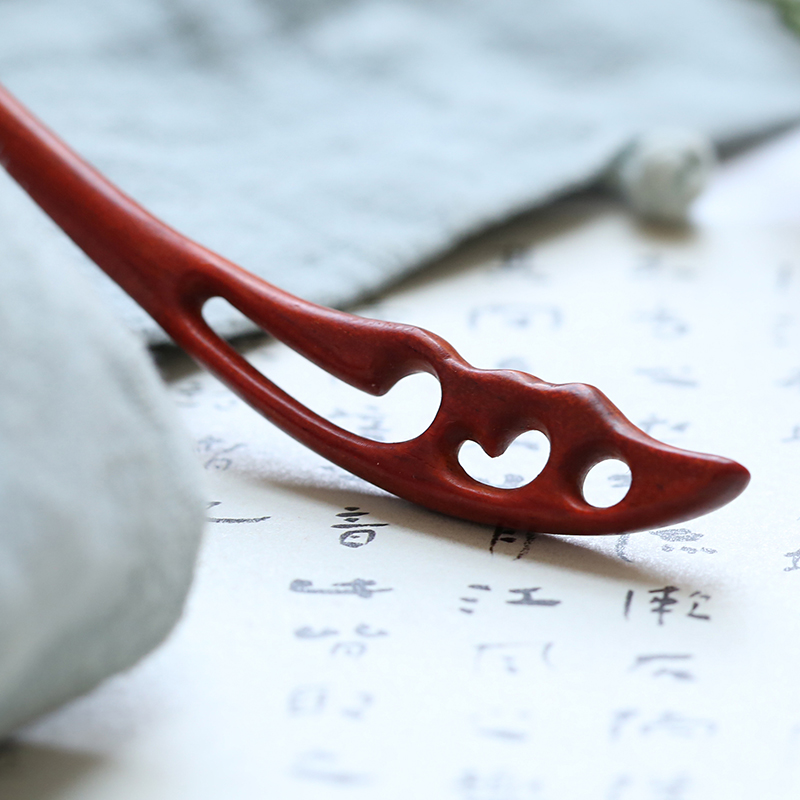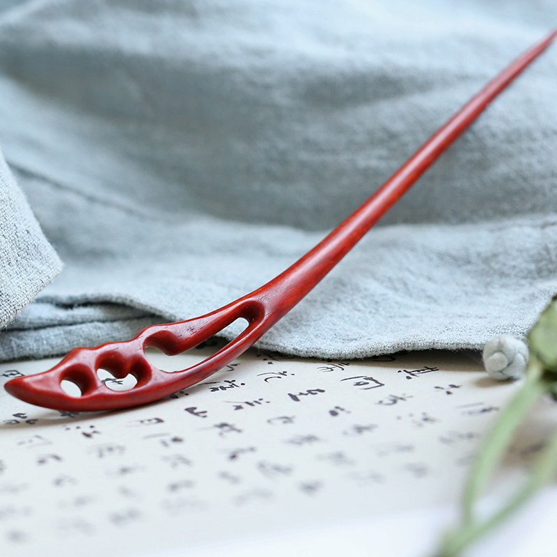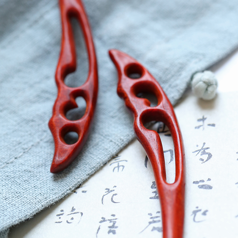 Indian lobular red sandalwood pull moon hairpin mahogany hairpin high oil and high density ethnic wind hairpin hair accessories gift wood carving