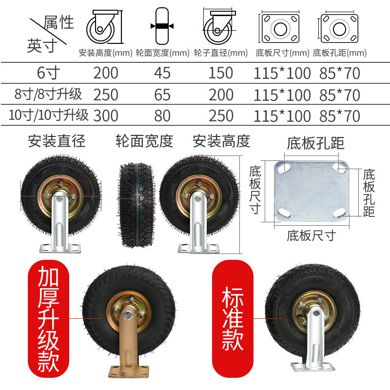 6 inch single wheel 8 inch single wheel 10 inch single wheel 6 inch directional (standard) 6 inch universal directional (standard) 8 inch directional (standard) 8 inch universal direction (standard) 10 inch directional (standard) 10 inch universal direction (standard) 8 inch directional direction (upgrade thickening) 8 inch universal wheel (upgrade thickening) 10 inch directional wheel (upgrade thickening) 10 inch universal wheel (upgrade thickening) 6 inch standard (4 fixed) 6 inch standard (2 fixed + 20,000) 6 inch standard (40,000) 6 inch standard (40,000) 8 inch standard (4 fixed) 8 inch standard (2 set + 20,000) 8 inch standard (40,000) 8 inch standard (40,000) 10-inch standard (4 fixed) 10-inch standard (2 fixed + 20,000) 10-inch standard (40,000) 8-inch upgrade thickening (4 fixed) 8 inch upgrade thickening (2 fixed + 20,000) 8 inch upgrade thickening (40,000) 10 inch upgrade thickening (2 fixed + 20,000) 10 inch upgrade thickening (40,000) universal wheel installation accessories (gloves a pair)