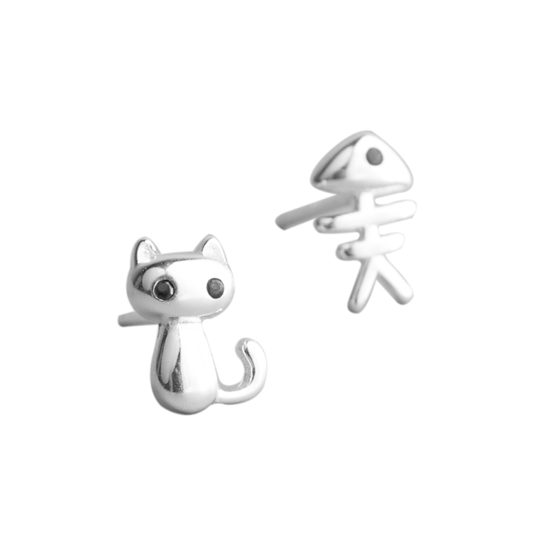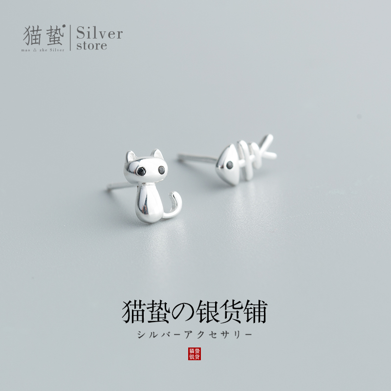 Cat sting cat fish bone earrings female S925 sterling silver Korean version simple girl small student sleep without ear jewelry