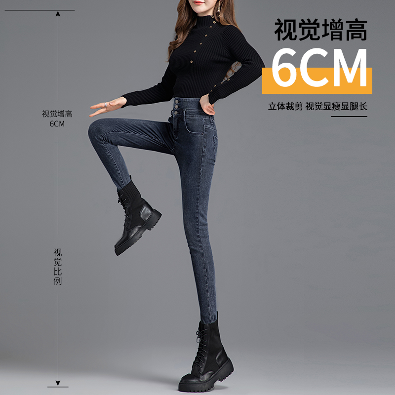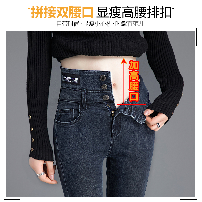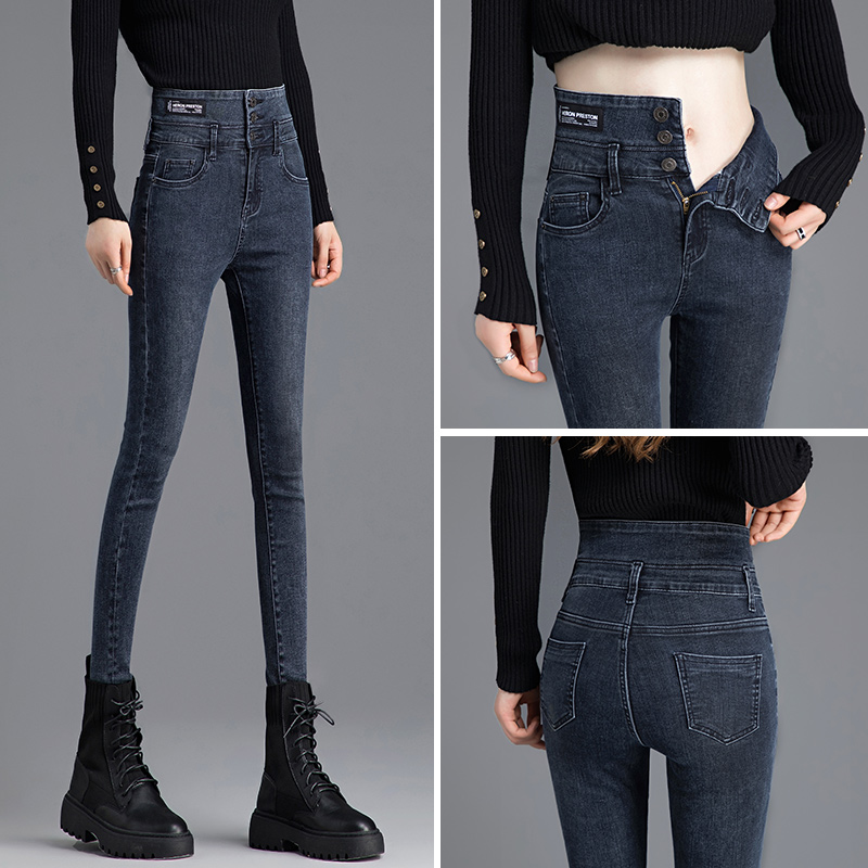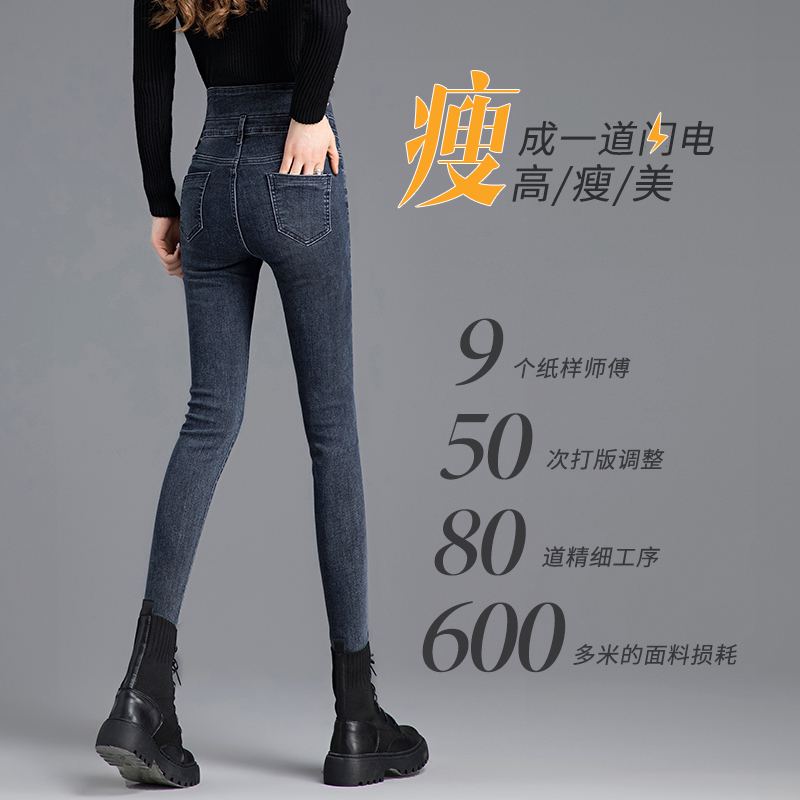 High-waisted belly Korean jeans women's tight-fitting narrow-pipe pants 2022 autumn and winter new slim plus velvet slim pencil pants