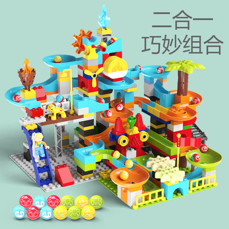 Children's large grain building blocks 100 variable chute Rolling ball track Puzzle Assembling Toy Male Girl Spell 3-6