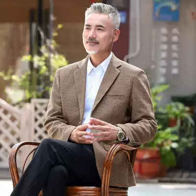 Middle-aged suit men's casual autumn and winter slim-fit plaid thick casual suit men's jacket single west top dad outfit
