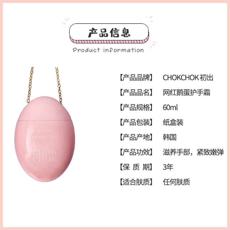 Korean chokchok goose egg hand cream moisturizing moisturizing moisturizing tender white female portable compact carry hot list
