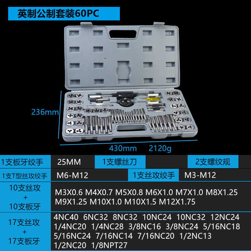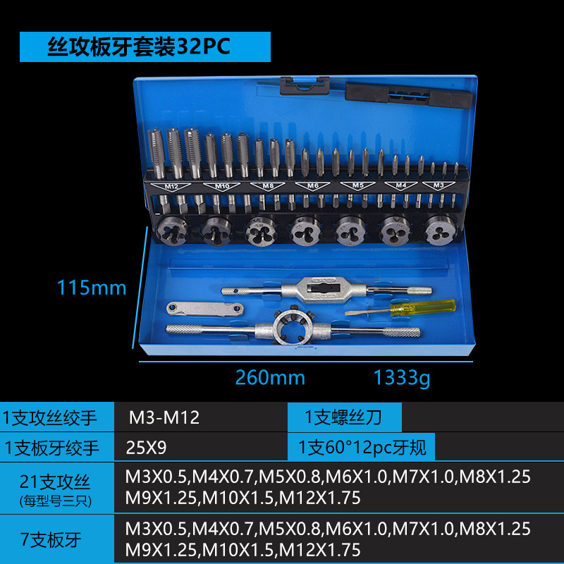 7-piece screw tapping set (without twister) 11PC die twister set 8PC die set 10PC die set 31PC die set 12PC metric tapping plate