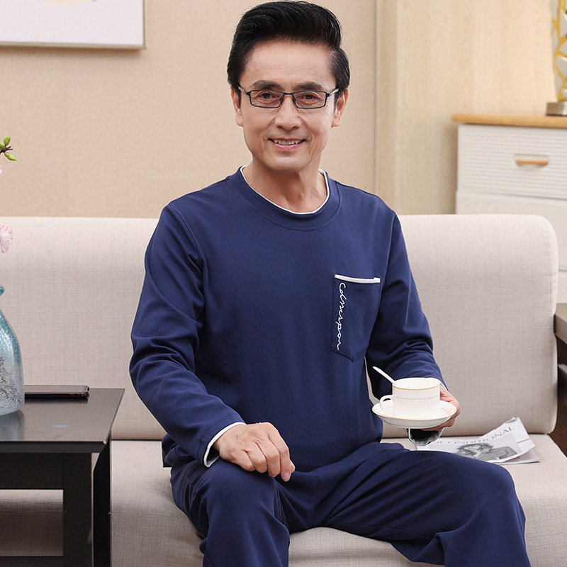 Dad long sleeve pure cotton pyjamas suit middle-aged men's casual all-cotton cover with enlarged code home suit Spring and autumn