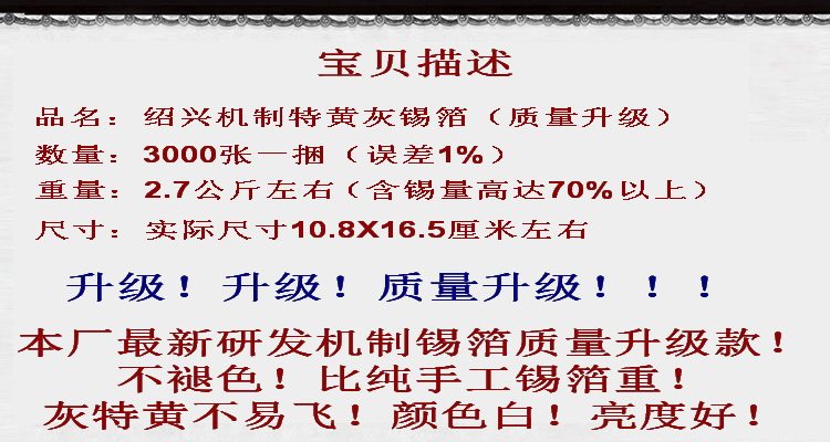Sacrificial supplies Authentic mechanism tin foil Yuanbao paper tinfoil Yuanbao origami 3000 sheets 11*17 Qingming