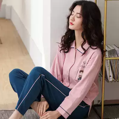 Antarctic pajamas female autumn cotton long sleeves large size Spring and Autumn women autumn and winter suits two-piece thin home clothes