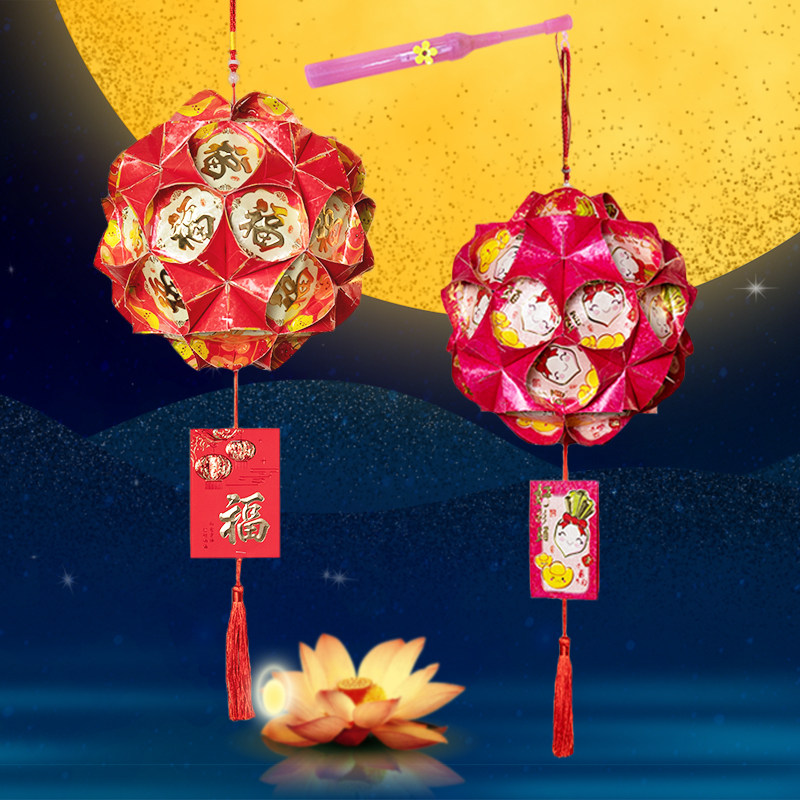 Mid-Autumn Festival handmade diy red envelope lantern parent-child children's environmental protection cartoon Li is sealed luminous material package finished decoration