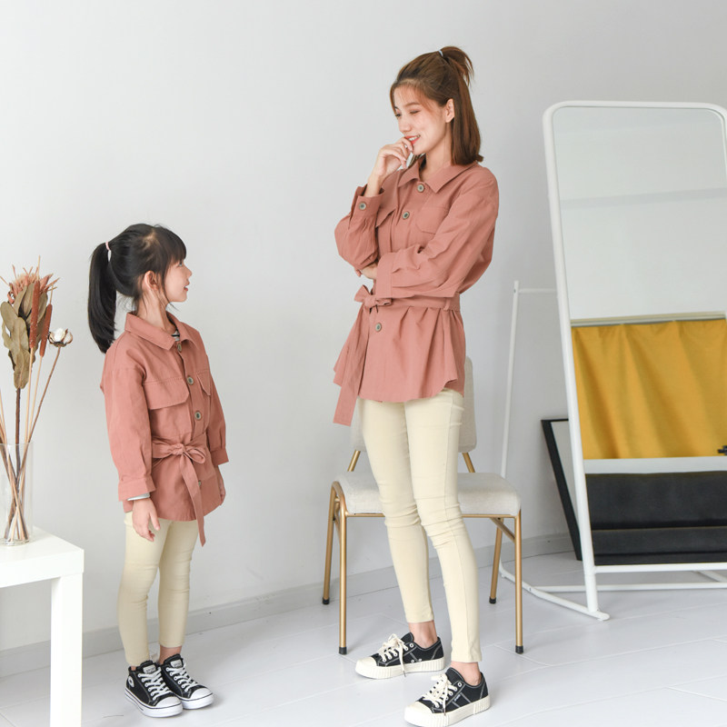 2021 spring new mother and daughter short windbreaker jacket pencil pants Korean version of the original mother and daughter fashion leisure suit