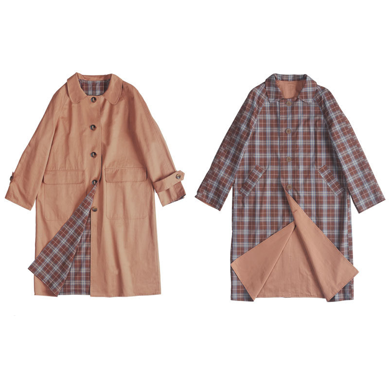 Mid-length pink reversible coat women's loose double-sided wear spring and autumn doll collar windbreaker spring new women's clothing