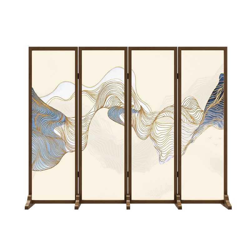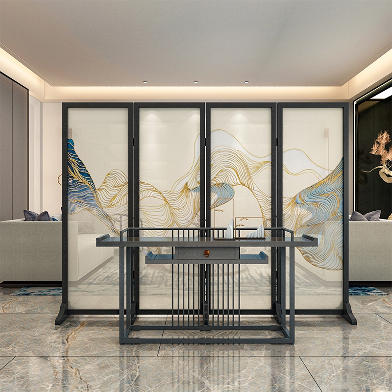 New Chinese style into the screen partition wall living room tea room folding mobile solid wood entrance bedroom hotel abstract folding screen