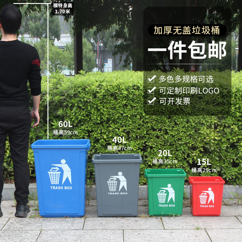 No Lid Large Trash Can large commercial catering Home Living room Kitchen Hotel Outdoor Large Capacity Rectangular with lid-Taobao