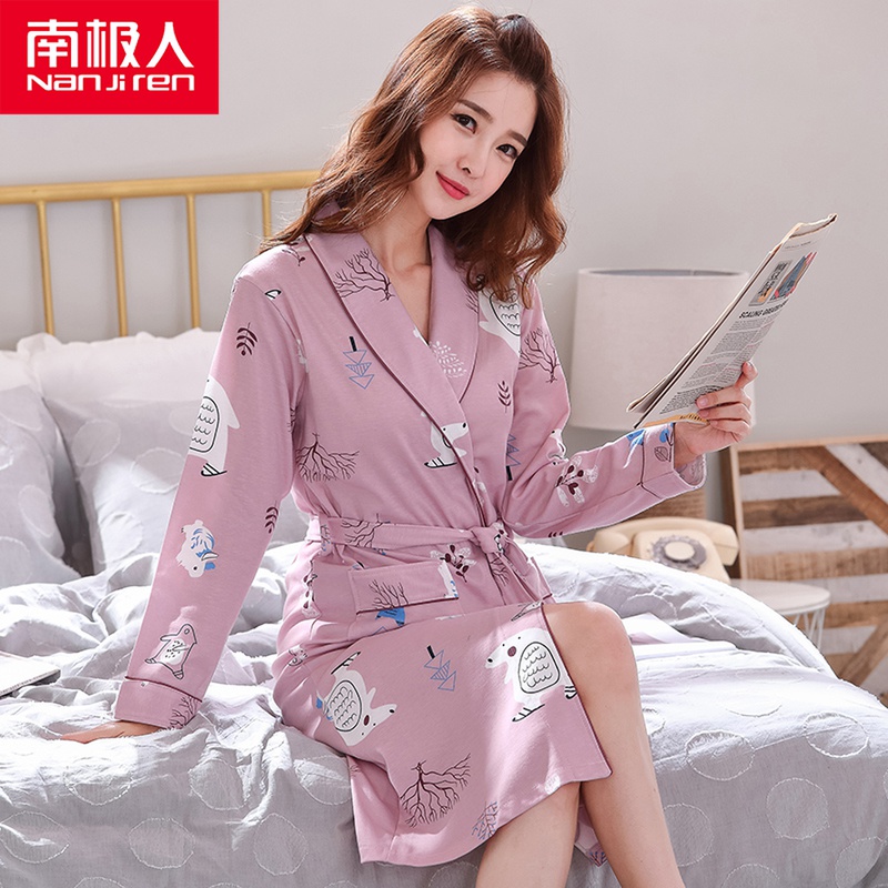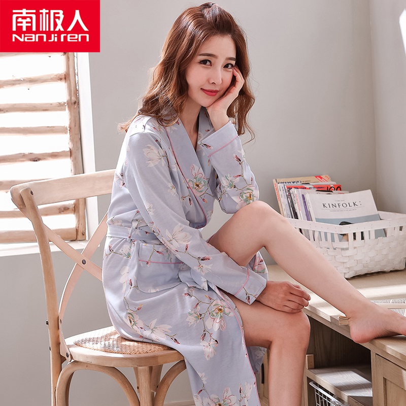 Lady Big Code Sleeping Robes Pure Cotton Long Sleeves Spring Autumn Season Thin winter bathrobes Long-style full cotton Japanese style morning gown beauty salon
