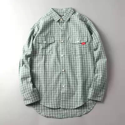 Foreign trade day single autumn and winter men's slim body washing pure cotton classic plaid pocket tooling casual long sleeve shirt men