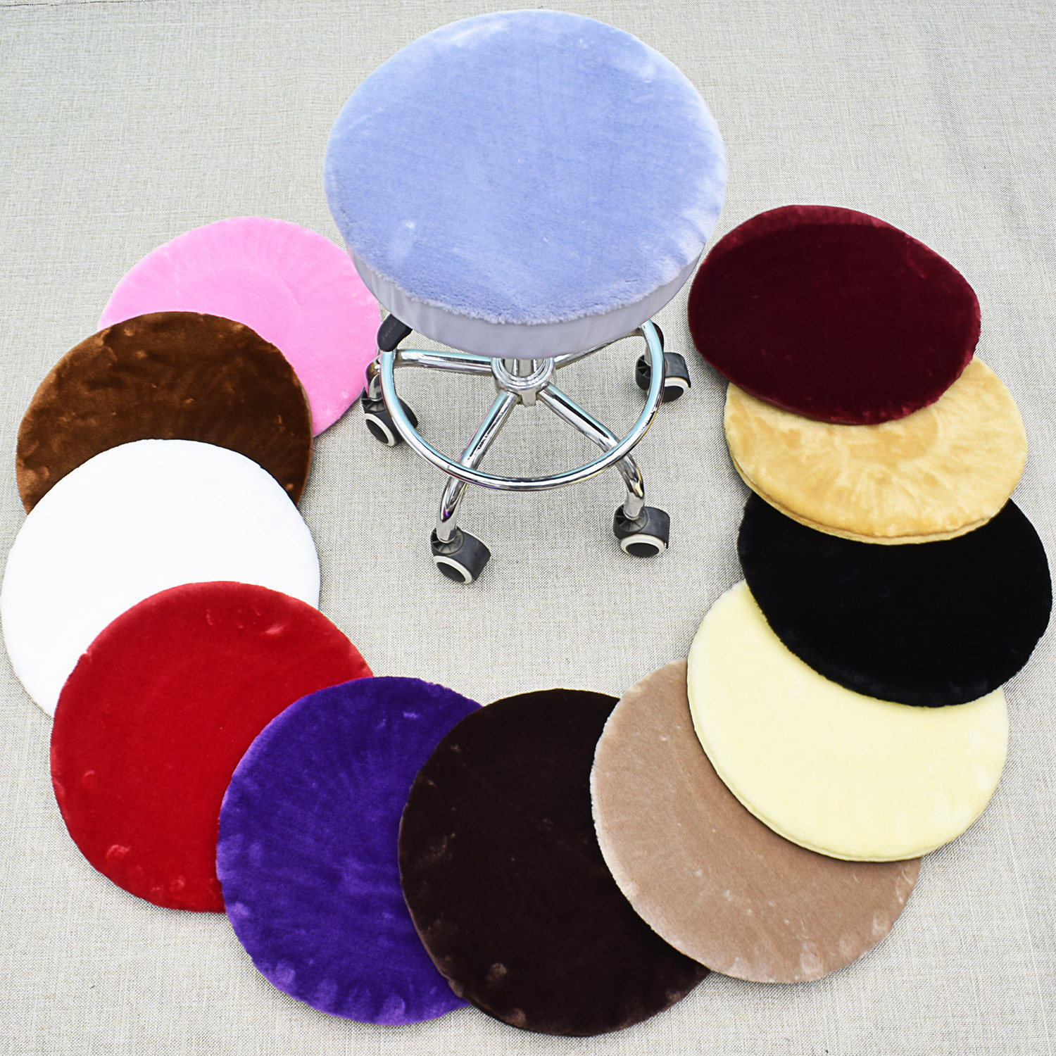 Thickened round stool cover round stool cushion winter round stool cover round stool cover plush chair cushion round chair cover chair cushion