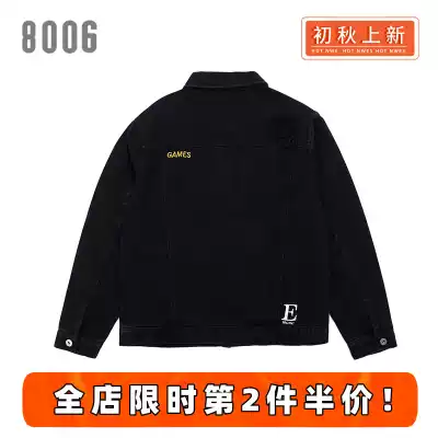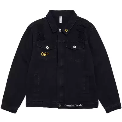 Embroidery scraped holes black denim jacket men's trend brand European and American street hip-hop Harajuku style retro loose and wild