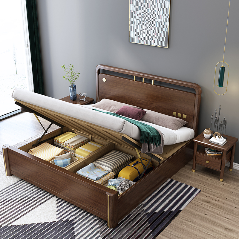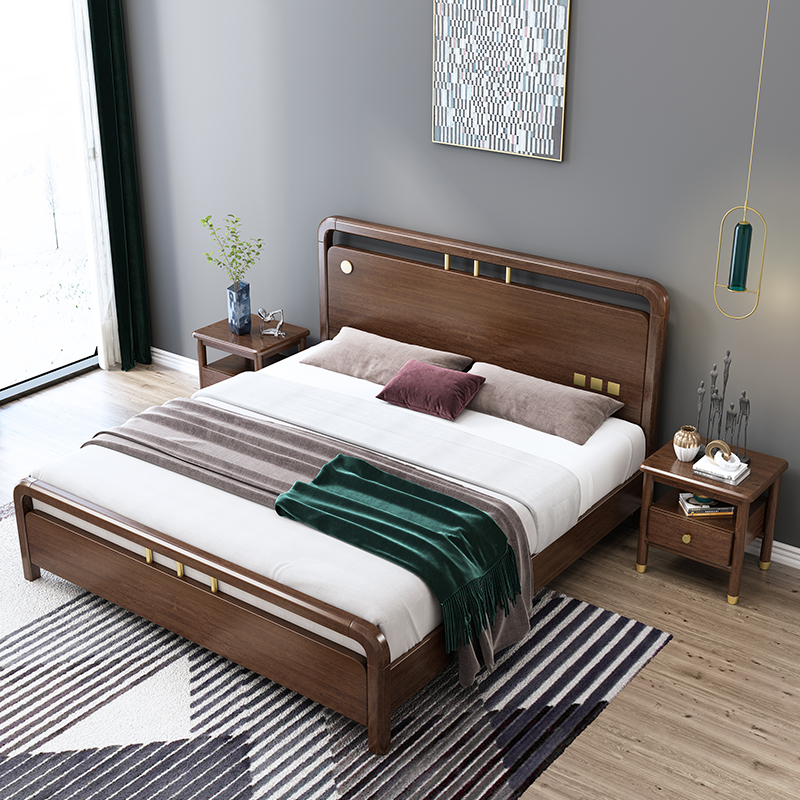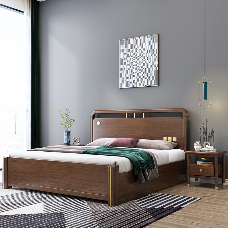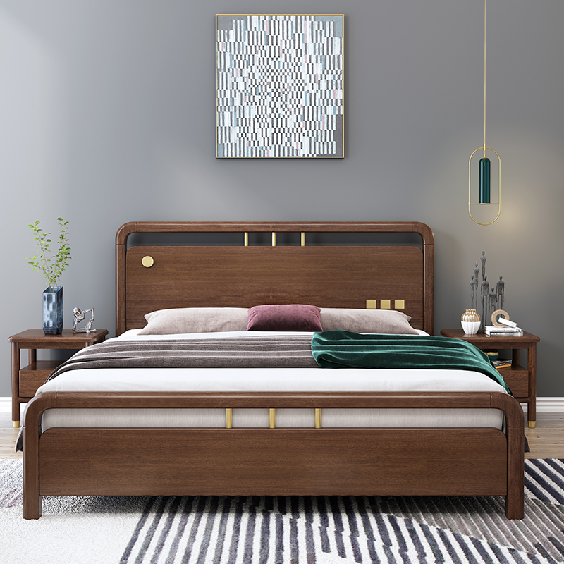 Dimeier new Chinese solid wood bed 1 8 meters double Nordic modern Walnut bed Simple 1 5m master bedroom wedding bed