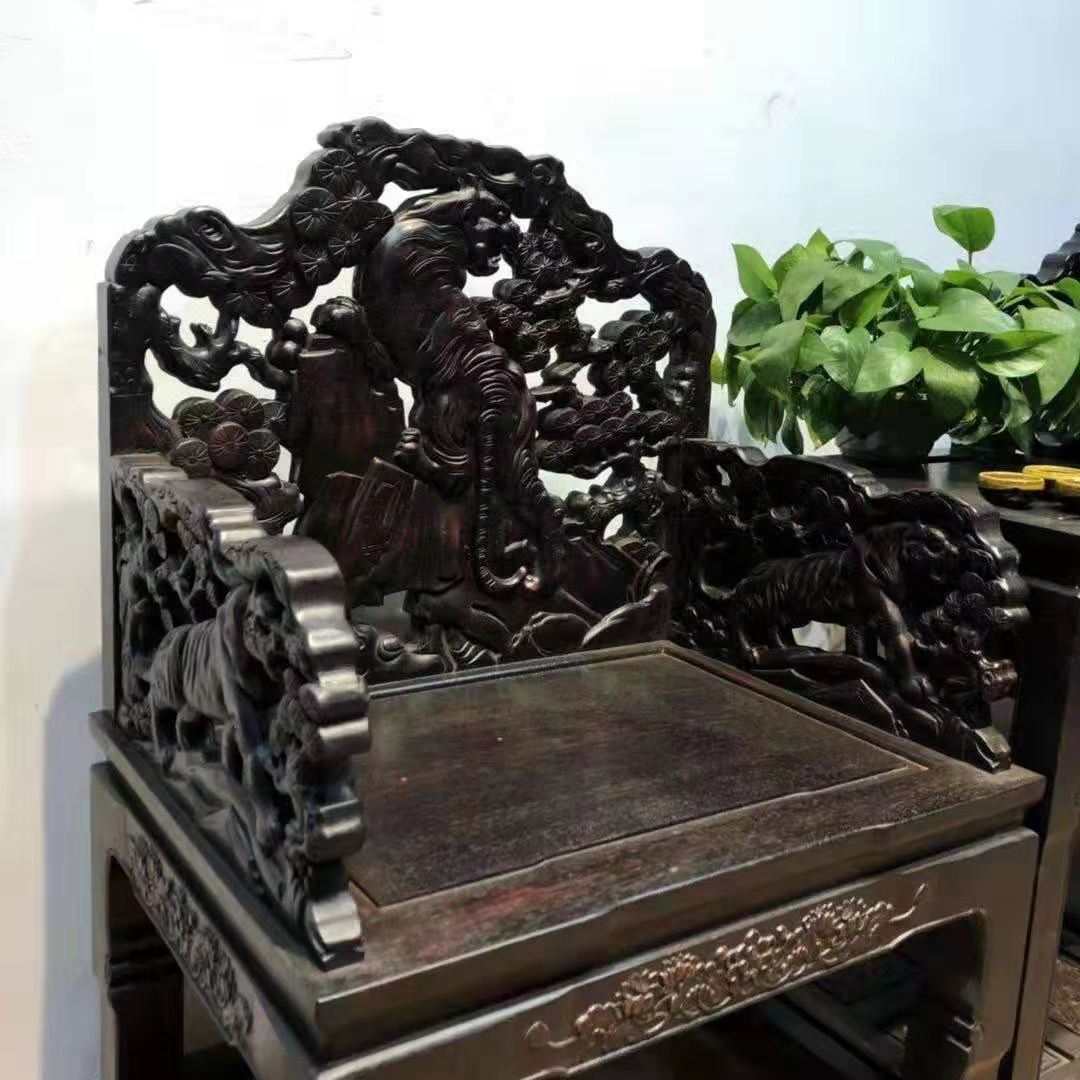 Old objects old furniture Furniture Sandalwood Full Wood Full Work Sculptor Chair Three Sets Palace Chair Official Hat Circle Chair Practical Pendulum