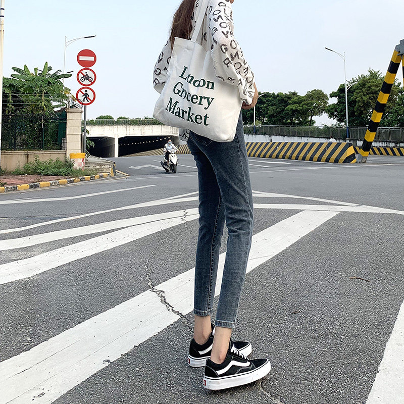 Black Jeans Lady Spring Autumn 2021 New High Waist Display Slim Fit Tobacco Grey Tight Pencil Small Feet