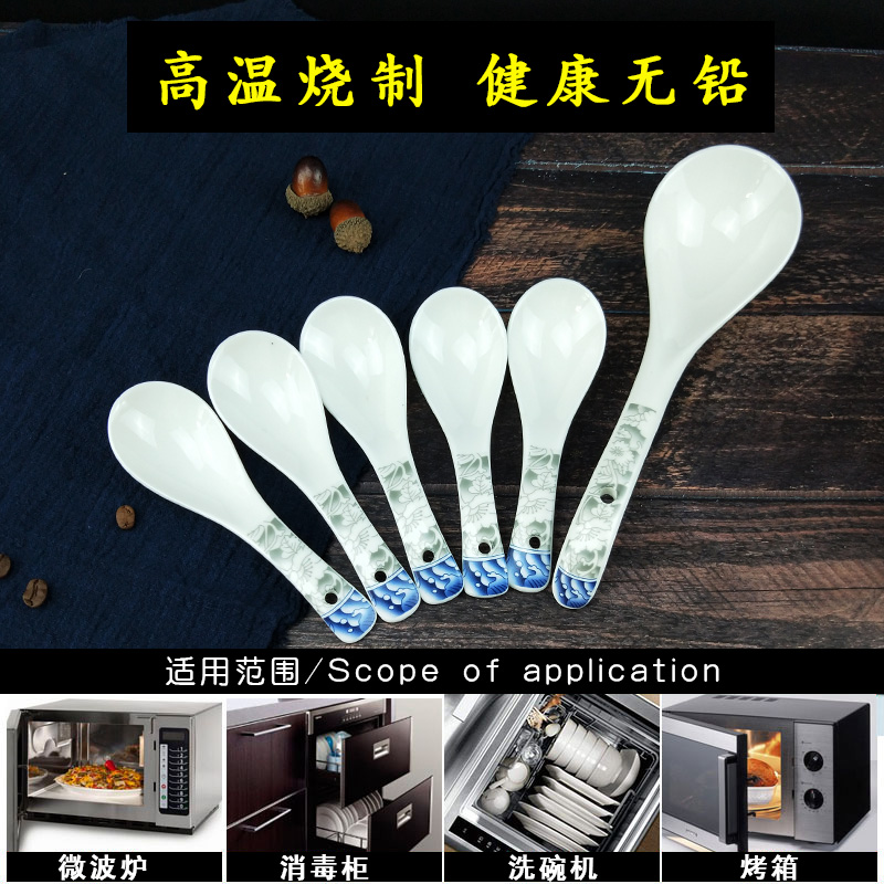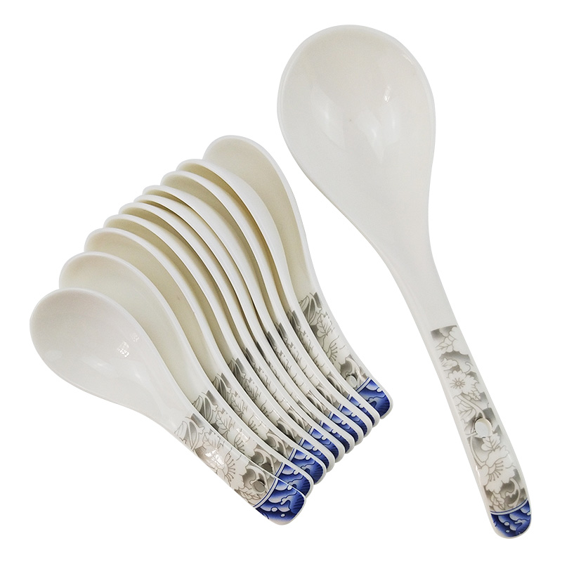 Green flower porcelain small spoon 10 pieces of green flower porcelain large spoon 2 clothes