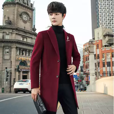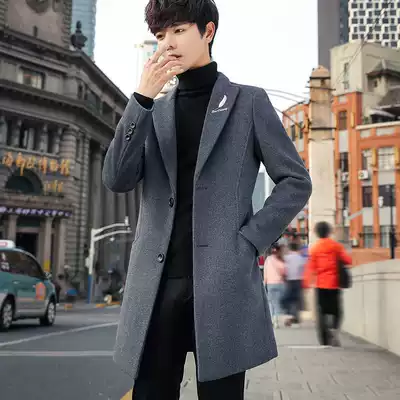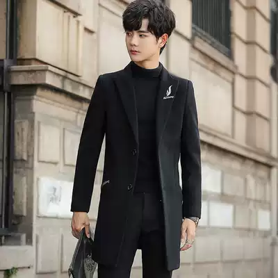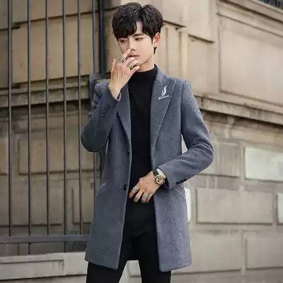 Winter woolen coat men's medium and long version of the Korean version of the trend British woolen coat men's windbreaker 2020 new