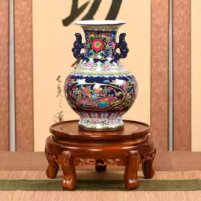Mahogany carving red sandalwood tiger head home decoration Jade vase Blue and white porcelain fish tank solid wood carving frame base