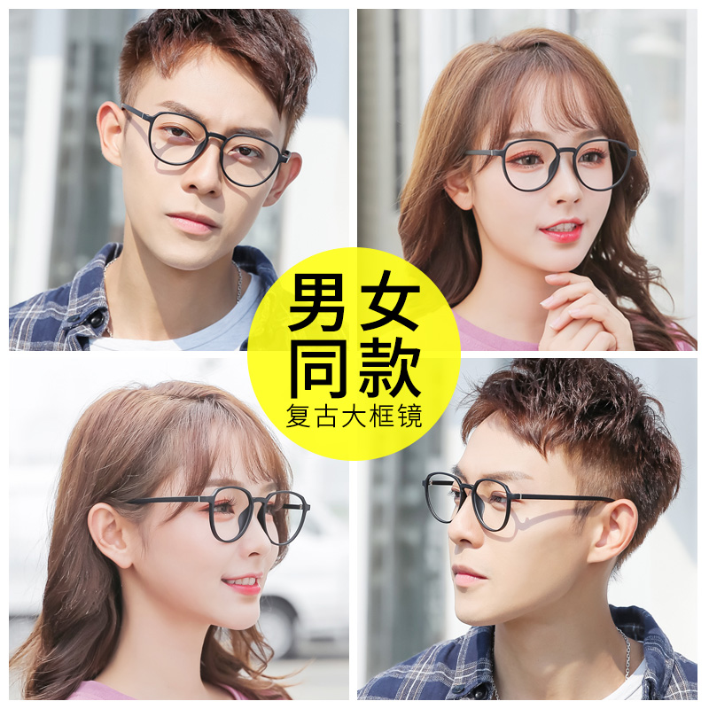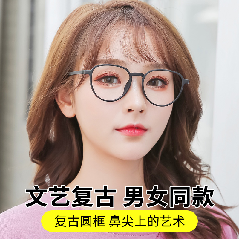 Retro TR90 Myopia Glasses Female Korean version Student Eye frames Pinoscope Men's round frame can be matched with degree black frame glasses