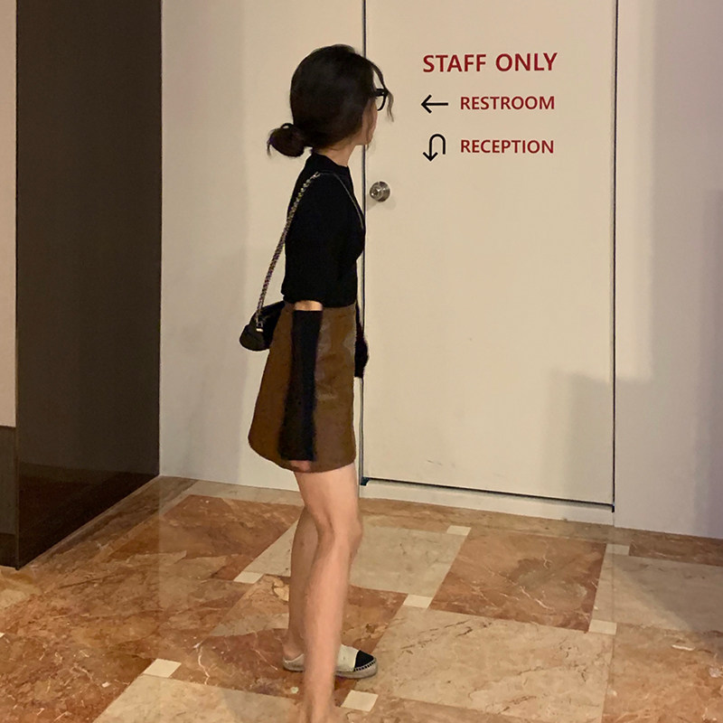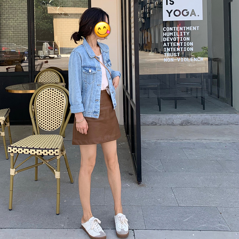 Halo nini brown leather skirt women's 2020 new spring and autumn skirt high waist thin wild a-line short skirt skirt