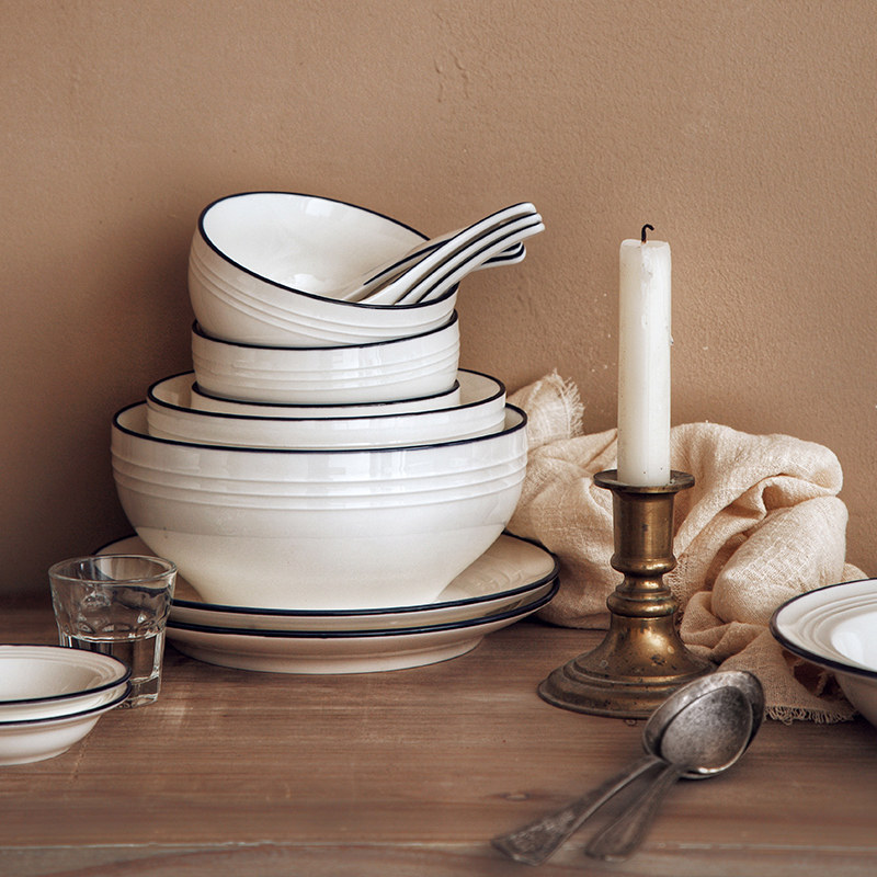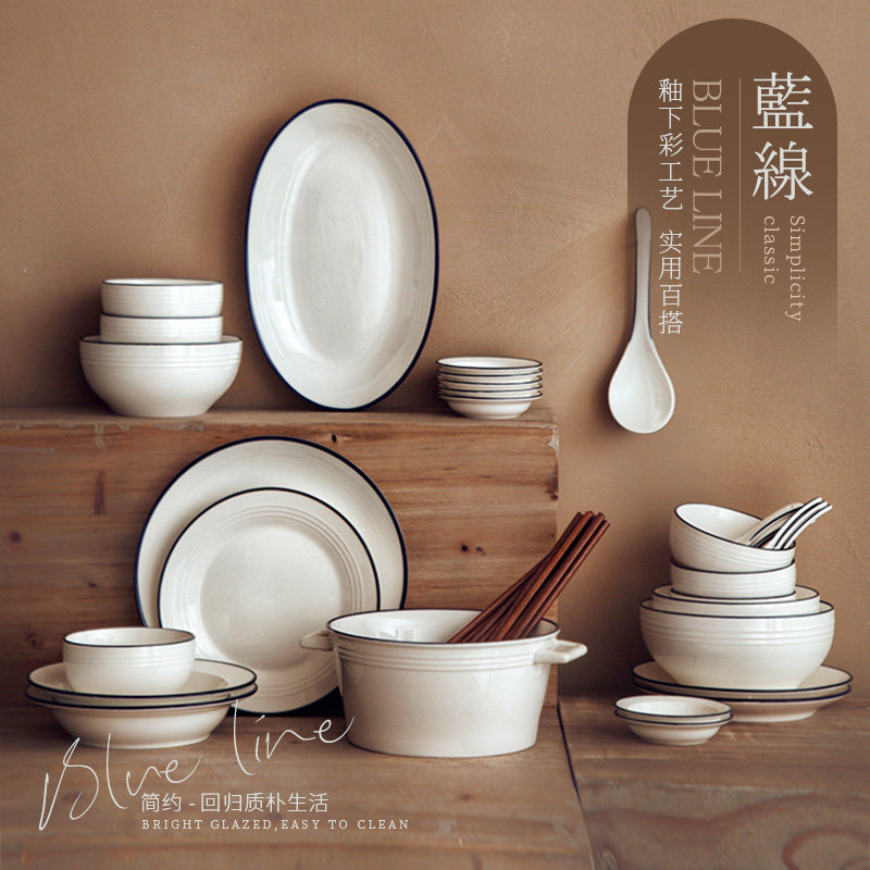 Bowl Dish Suit Home Blue Side Cutlery Day Style Minimalist Creative Mesh Red Cutlery Nordic Ins Wind Bowls Pan Chopstick Composition