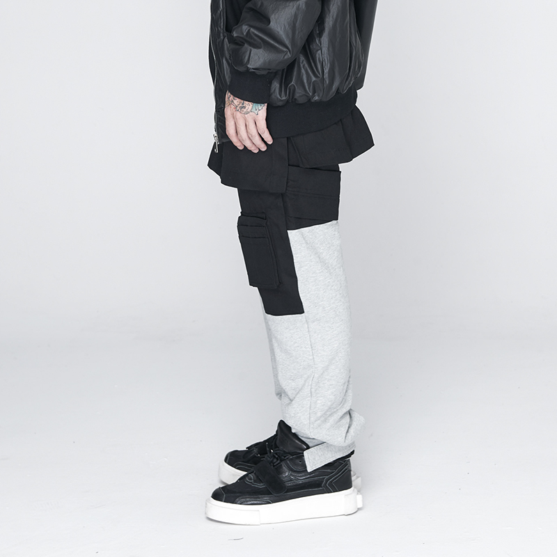 The Dirty Collection 2019AW trend double multi-pocket color matching wash stitching skirt pants men