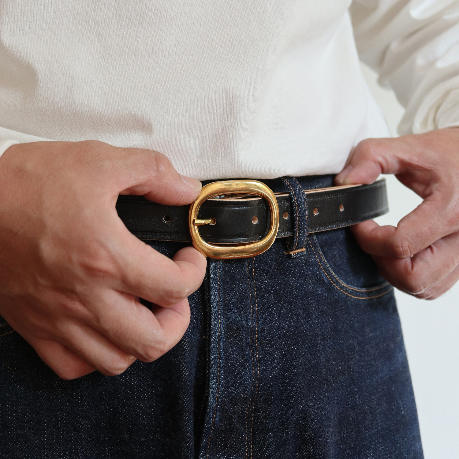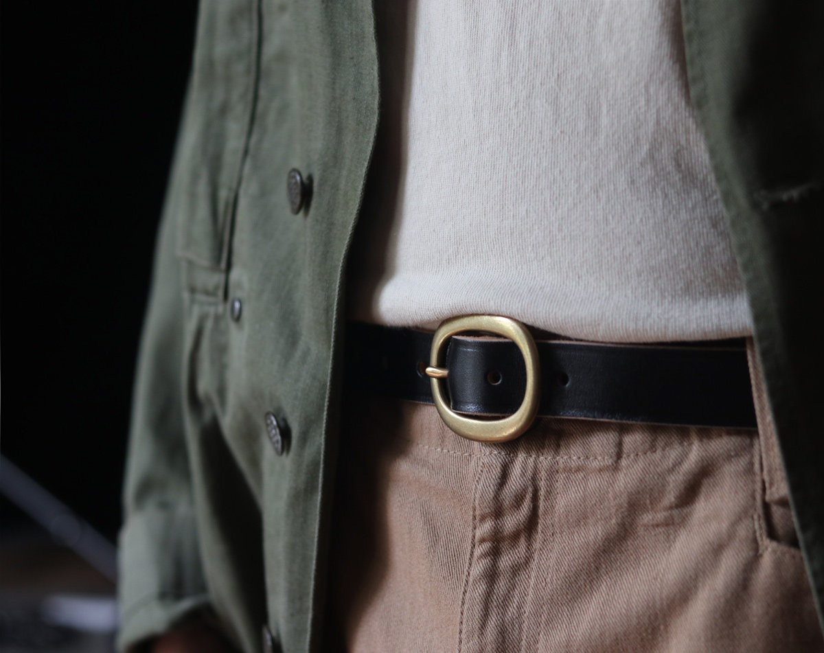 Hardwond Vintage retro tea core cow leather leather narrow casual needle belt belt