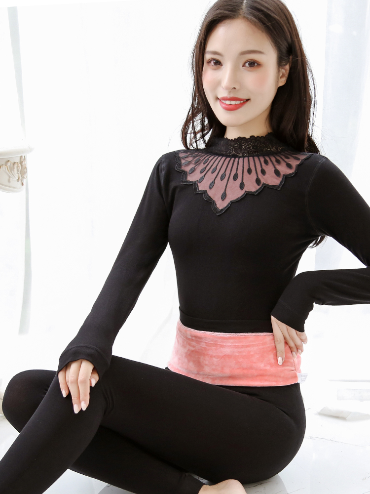 Fever pants half high collar embroidered body ladies autumn clothes sanitary pants student plus velvet padded tight cotton sweater