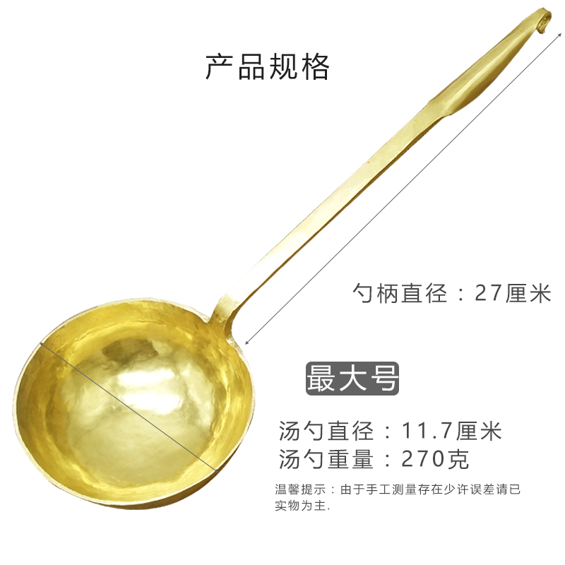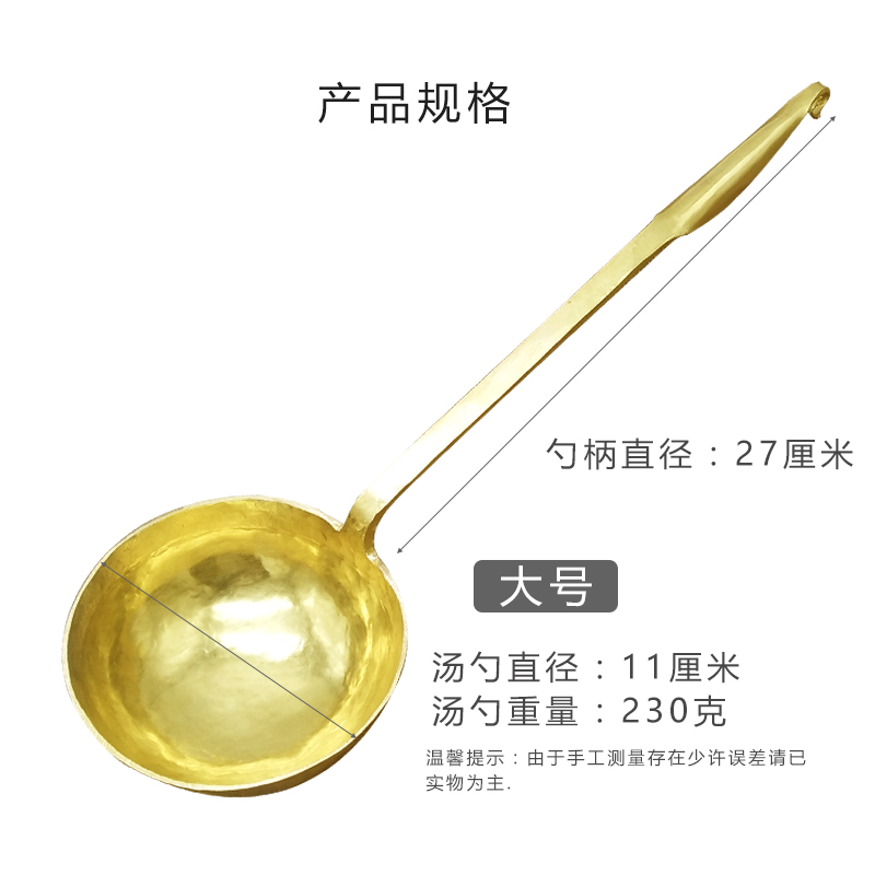 Old-fashioned hand-forged pure brass large porridge soup spoon children's spoon small fried egg cough soup copper spoon