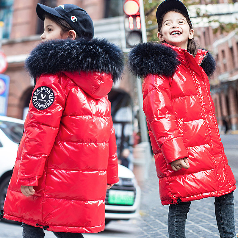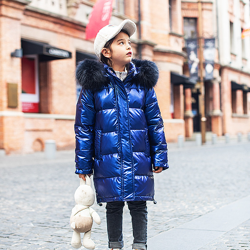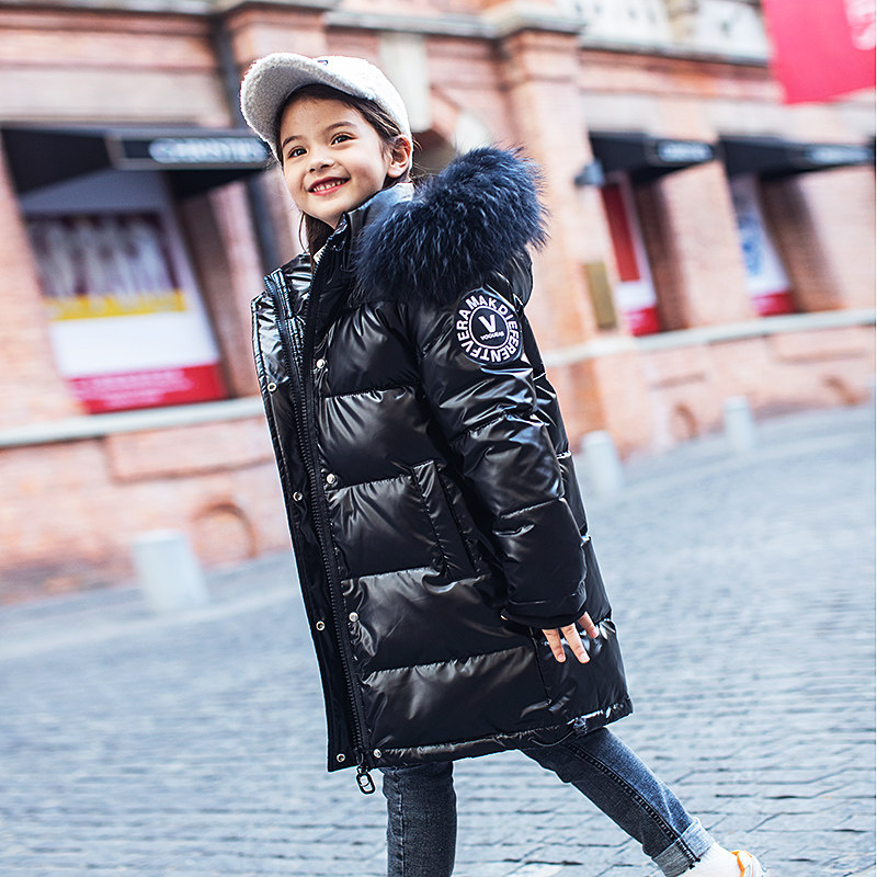 New girl's down jacket mid-length version Korean version of the Western style bright explosion children's suit thickened 2019 new winter clothing trend