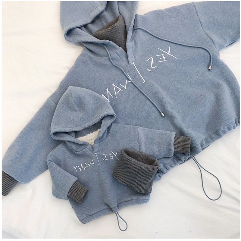 Parent-child clothing autumn and winter clothing a family of three four mother and daughter mother and child fashion foreign style thick fleece sweater suit two-piece set