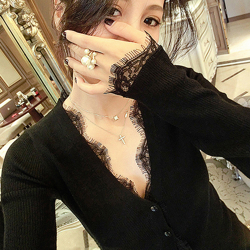 2021 Fall New Knit Cardiovert Woman Short V collar Long sleeves Knitted Sweatshirt Thin jacket Small fragrant wind blouses