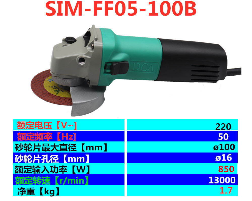 Dongcheng DCA angle mill SIM-FF05-100B side switch 850W angular grinding turbine cutting grinding machine