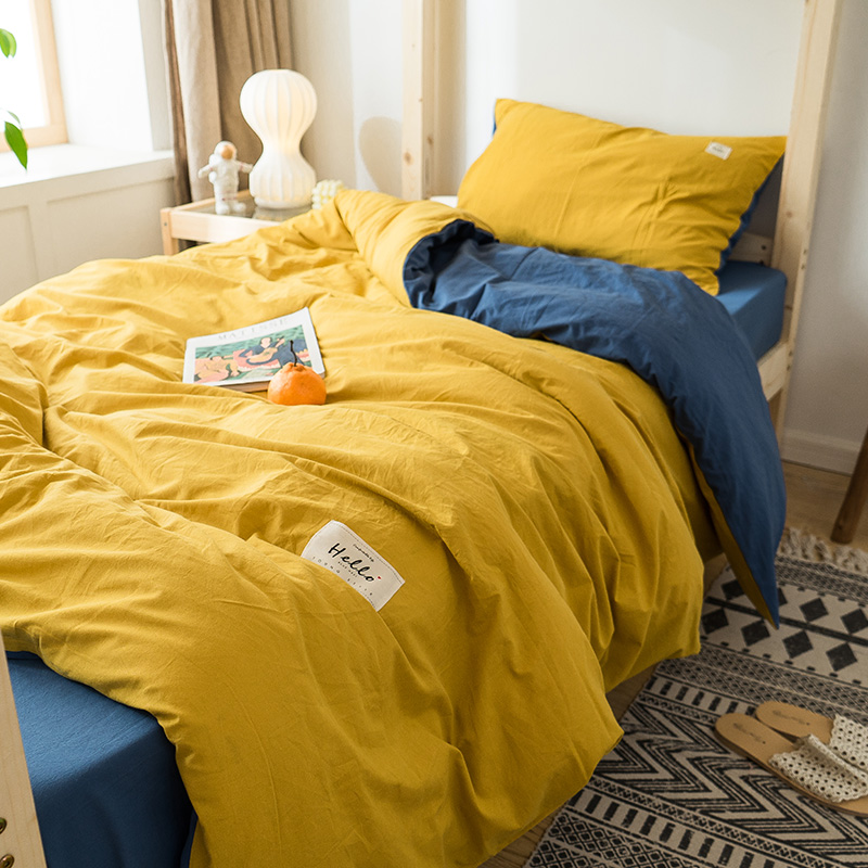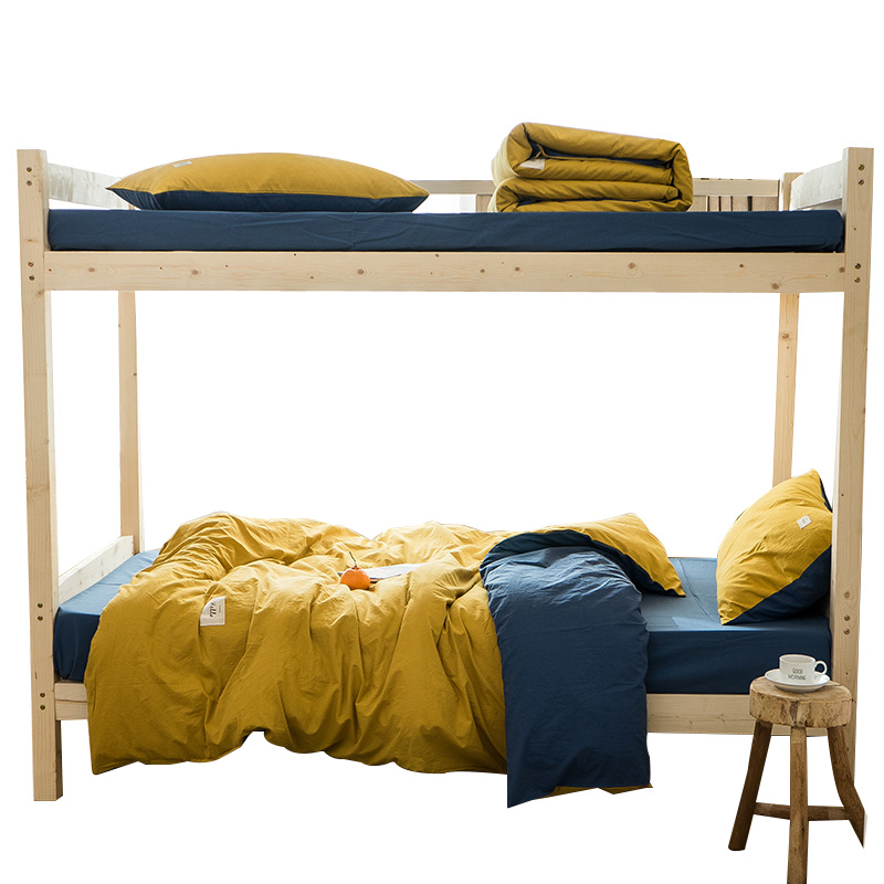 Student dormitory bed Three sets of full cotton quilts pure color bed sheet washed pure cotton four-piece single sleeping room bed product