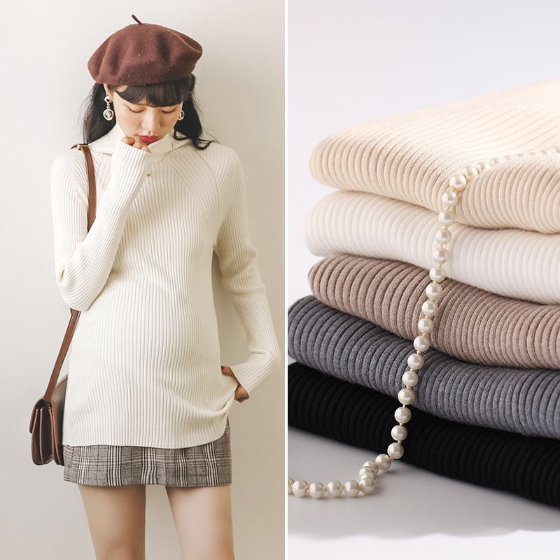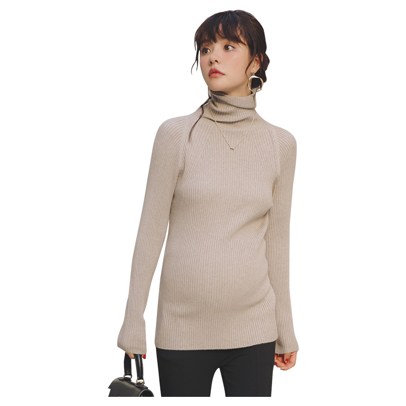 Midori maternity sweater foreign air knit top high neck spring and autumn bottom sweater medium long style outside wearing maternity autumn clothes