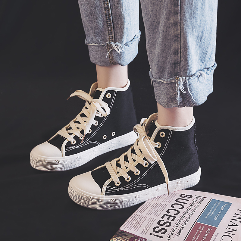 Pull back high-top canvas shoes women's 2022 autumn new student all-match Korean version of the shoes back to the power of small white shoes women