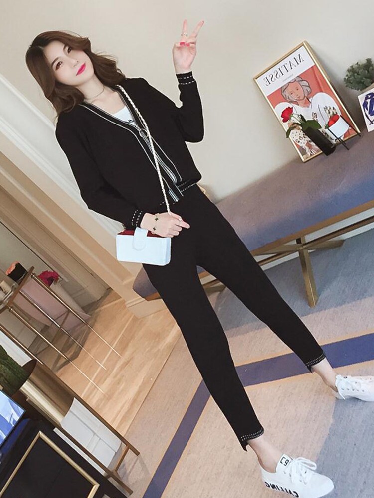 Large size 2020 new fashion autumn and winter models fat mm Hyuna wind suit female micro-large size women's clothing a set of matching temperament