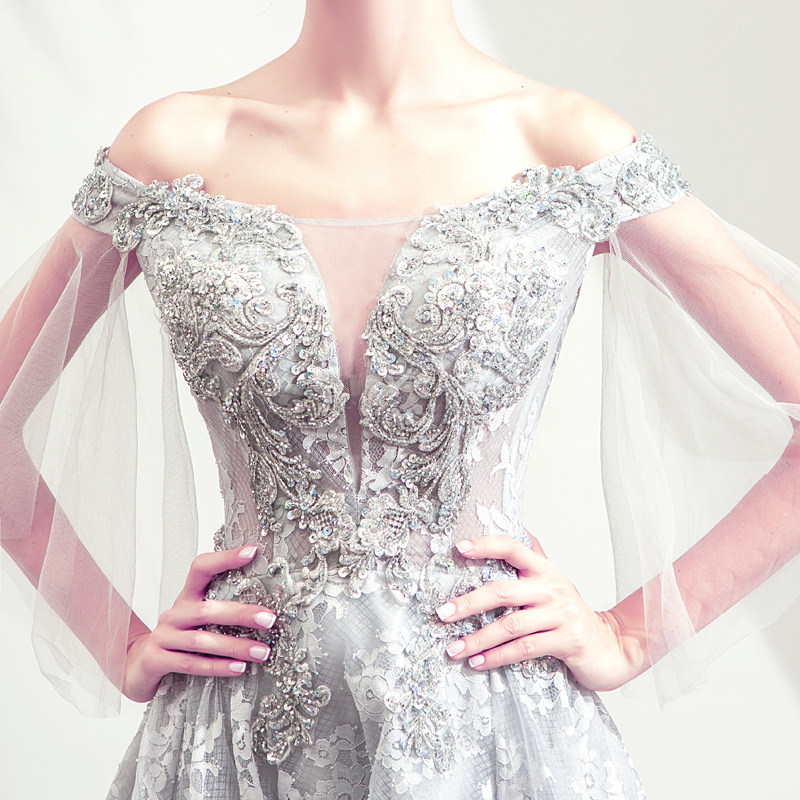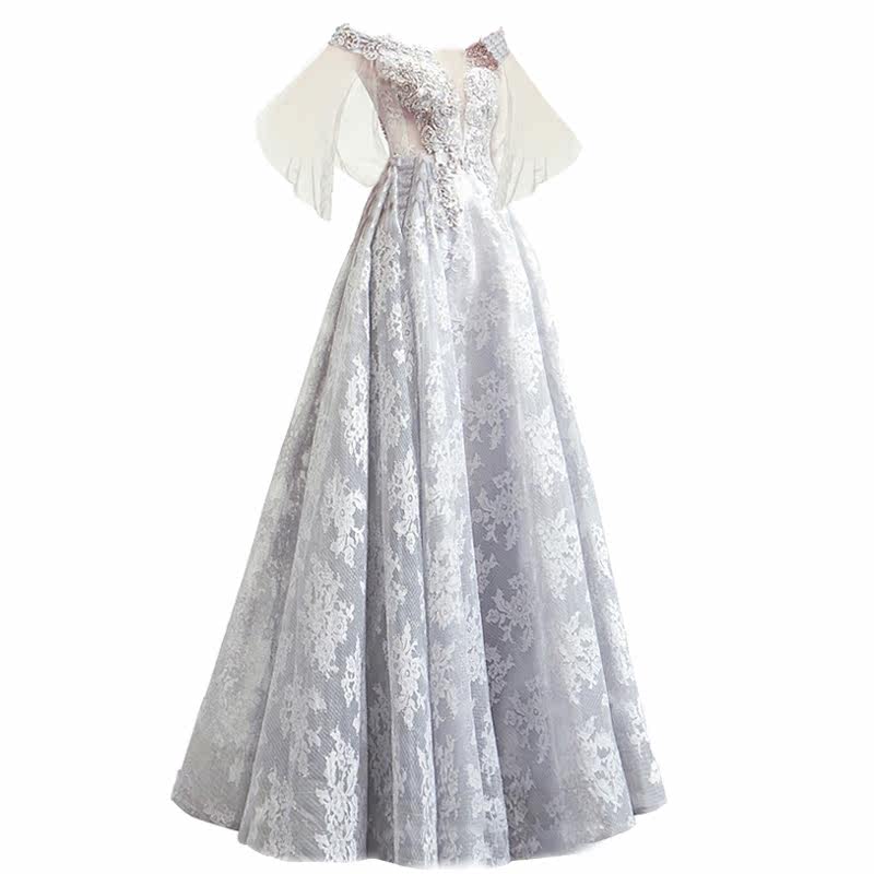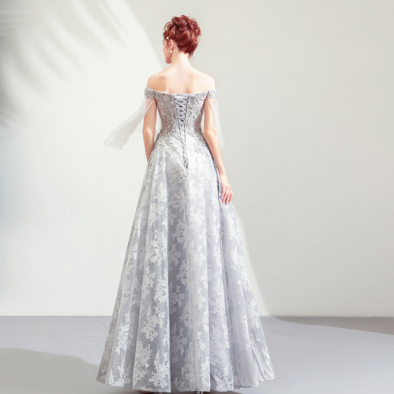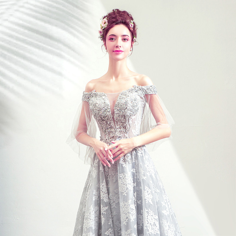 Angel's wedding dresses Grey Dinner Party's Annual Meeting Stage Performance Host Wedding Evening Dress 8911